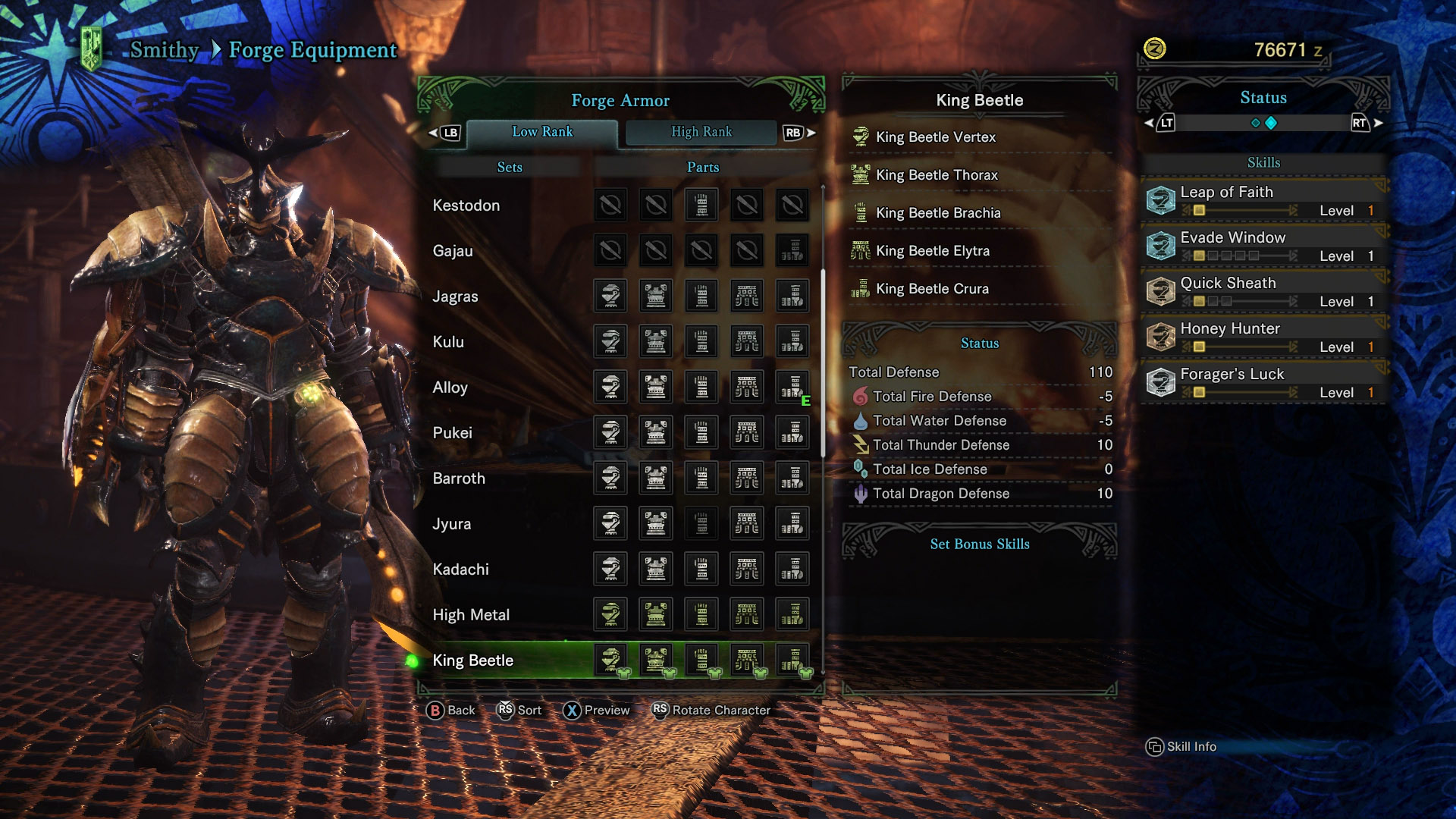 Armor sets have special effects when equipped, and combine skills depending on the pieces equipped. Leap of faith, evade window, quick shealth, honey hunter, and forager’s luck. Master rank armor is the latest tier of armor to hit monster hunter world thanks to the release of the iceborne dlc, and there are plenty of. This page contains information about the king beetle armor set in the game monster hunter world (mhw). Female equivalent would be butterfly. Armor can be crafted at the smithy in astera. Layered armor in monster hunter world can change the outward appearance of your hunter. Armor sets have special effects when equipped, and combine skills depending on the pieces equipped. Increases the number of times you can use a gathering point.