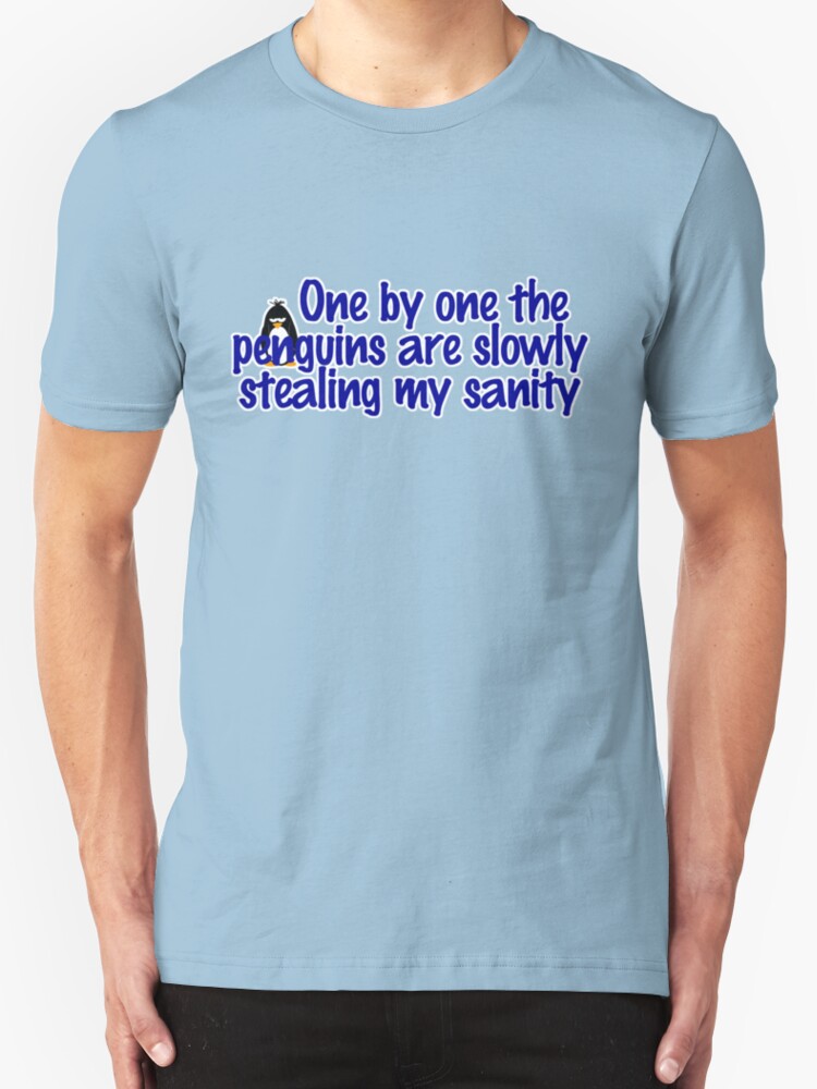 One By One The Penguins Steal My Sanity. Perhaps it comes from next door. Penguins don't come from next door, they come. One by one the penguins steal my sanity. They cannot stand seeing any view other than their own. One by one the penguins steal my sanity wednesday, may 04, 2005. Is our world considered as a polluting planet. One by one the penguins steal my sanity shirt dom noble our style: Men t shirt, women t shirt, long sleeves, hoodie, sweatshirt plus size our size: 1 definition by [one by one the penguins steal my sanity]. Saturday, june 19, 2004 june 19, 2004. Is the world around you just a figment of your imagination. One by one, the penguins steal my sanity… i should probably explain what the hell is going on, as the average reader would no doubt be scratching his/her head until it became raw and bloody. One by one, the penguins steal my sanity. It has been crazy at school lately for a couple of reasons. Something i say when i'm hyper ,.